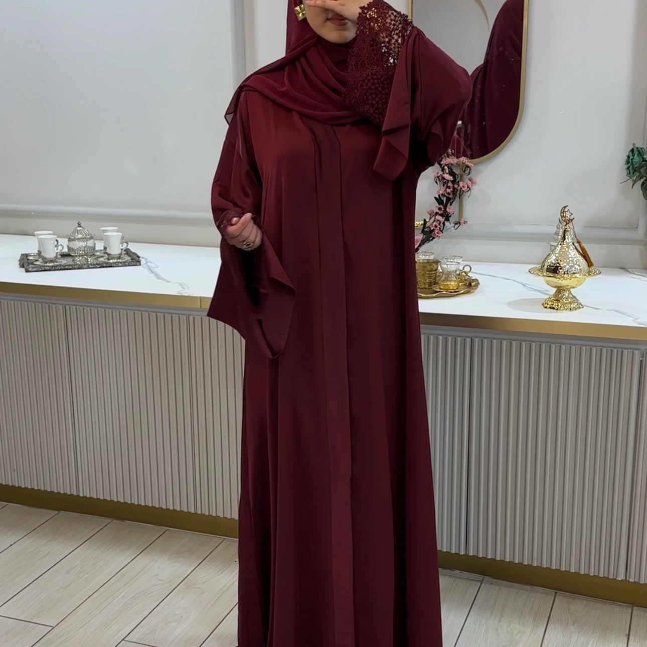 تفاصيلها الفخمة وقماشها الناعم يجعلها مثالية لكل امرأة تبحث عن إطلالة محتشمة أنيقة بلمسة فاخرة.