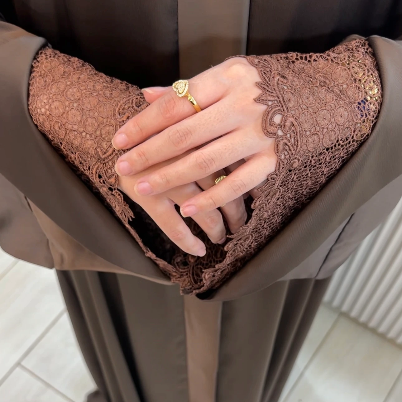 ✔ تفصيل غيبور فاخر على الأكمام يضيف لمسة أنثوية راقية